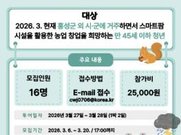 홍성군이 스마트팜 창업을 희망하는 청년들을 위해 특별한 체험의 장을 마련한다.홍성군농업기술센터는 청년을 대상으로, 오는 27일부터 28일까지 1박 2일간 ‘청년 창농 희망 귀농투어’를 운영한다고 밝혔