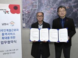 남원시는 29일 남원시가족센터와 다국적 외국인계절근로자의 원활한 의사소통과 안정적인 근로・생활 지원을 위해 통역지원 서비스 확대를 위한 업무협약을 체결했다.외국인계절근로자 도입 5년차를 맞은 남