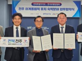 전북특별자치도가 전주하계올림픽 유치를 위한 핵심 과제인 숙박 인프라 확보에 본격 나섰다.전북자치도는 9일 서울 중앙협력본부에서 한국호텔업협회와 전주하계올림픽·패럴림픽 유치 숙박 분야 업무협약(M