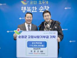 순창군은 9일 대일화학 유운규 대표가 고향사랑기부금 500만원을 기탁했다고 밝혔다.순창군 적성면 출신인 유운규 대표는 현재 대일화학을 운영하며 활발한 경영 활동을 펼치고 있다. 유 대표는 평소에도 고