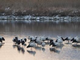 고창군이 해리천 일원에서 환경부 멸종위기종 1급이자 천연기념물인 황새 무리가 역대 최대 규모인 80여 마리나 월동 중인 것으로 확인됐다고 9일 밝혔다. 앞서 고창군에선 지난 2021년 60여 마리, 2023년 6
