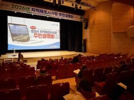정읍시가 토지의 실제 현황과 일치하지 않는 지적 경계를 바로잡아 시민의 재산권을 보호하기 위해 지난 27일 정읍사예술회관에서 ‘2026년도 상동2지구 및 상동4지구 지적재조사사업’ 주민설명회를 개최하
