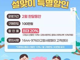 고창군이 2월 한 달간 고창사랑상품권 최대 20% 할인 판매를 실시한다.이번 할인 판매는 상품권 구매 시 즉시 적용되는 선할인 10%에 더해, 고창사랑카드로 결제할 경우 결제금액의 10%를 후캐시백으로 추가