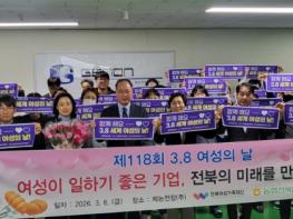 전북특별자치도는 6일 제118회 세계 여성의 날을 맞아 전북여성가족재단, 농협중앙회 전북본부와 함께 여성친화기업 제논전장㈜를 방문해 여성 근로자들을 격려하고 성평등 조직문화 확산을 위한 기념행사를