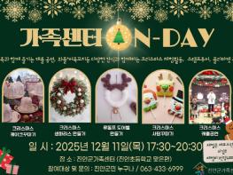 진안군은 가족 소통 공간으로 자리매김하고 있는 진안군가족센터에서 오는 12월 11일 17시 30분 부터‘온데이(ON-DAY) 크리스마스 행사’를 개최한다고 밝혔다.이번 행사는 가족센터 이용 활성화와 가족 친