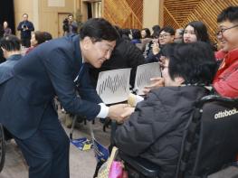 도내 장애인단체들이 한자리에 모여 연대와 협력을 다지는‘제4회 장애인단체 교류회 및 복지대상 시상식’이 1일 전주 치명자산성지 평화의 전당에서 열렸다. 이번 행사에는 김관영 전북특별자치도지사를