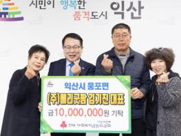 익산시 웅포면에 위치한 농업법인 ㈜베리굿팜의 김기진 대표가 1일 시청을 방문해 성금 1,000만 원을 기탁했다. 김기진 대표는 2008년부터 매년 이웃사랑을 실천하며 지역의 '기부천사'로 불리고 있다. 김