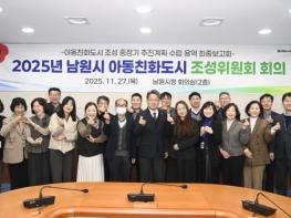 남원시는 지난 27일, 시청 회의실(2층)에서 ‘아동친화도시 조성위원회 회의’를 개최했다.이날 회의는 남원시가 추진 중인 아동친화도시 조성 사업의 경과를 점검하고, 전문가 의견을 수렴하여 보다 실효성