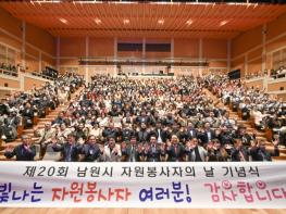 남원시는 지난 26일 청아원에서 자원봉사자들의 노고를 격려하고 화합을 다지는 ‘제20회 남원시 자원봉사자의 날 기념식’을 개최했다. 약300여명의 자원봉사자가 함께한 이번 행사는 다가오는 ‘세계 자원