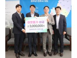 OB맥주(주) 전주지점이 26일 전주시를 찾아 취약계층의 따뜻한 겨울나기를 위한 성금 300만 원을 쾌척하며 본격적인 추위가 시작되는 연말을 맞아 지역사회에 훈훈한 감동을 전했다. 이날 전달식에는 채용석
