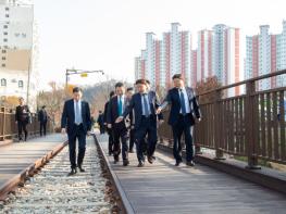 군산시가 26일 사정삼거리에서 구)군산화물역을 잇는 도시바람길숲 ‘군산 철길숲’ 준공식을 개최했다.이번 준공식에는 노홍석 전북도 행정부지사, 산림청 박은식 차장, 국가철도공단 권혁 경영지원처장,