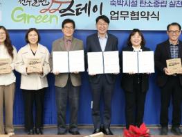 국가대표 여행지인 전주한옥마을 내 주요 숙박시설이 탄소중립 실천에 동참키로 했다. 전주시와 (사)전주한옥마을숙박체험업협회, 전주지속가능발전협의회는 26일 시청 3층 회의실에서 숙박시설의 탄소중립