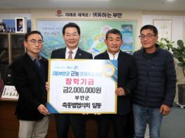 부안군 축종별협의회는 지난 25일 부안군 근농인재육성재단을 방문해 지역 인재 양성과 교육복지 확대를 위해 장학금 200만원을 기탁했다. 이날 기탁식에는 최관선 회장을 비롯해 하상현 사무국장, 임요섭