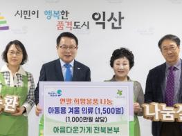 익산시에 취약계층 아동을 위한 따뜻한 겨울 선물이 전달됐다. 비영리 공익단체인 '아름다운가게전북본부'는 24일 익산시에 겨울 아동의류 1,500벌을 기탁했다. 이번 기탁은 취약계층 아동이 건강하게 성장