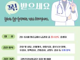 남원시보건소는 의료 취약계층의 질병 예방 및 조기 발견을 위한 의료급여수급권자 대상 무료 일반건강검진을 적극 독려하고 있다.올해 의료급여수급권자 일반건강검진 대상자는 20~64세까지 홀수년도 출생