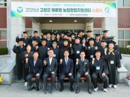 고창군이 13일 체류형농업창업지원센터에서 ‘2025년 체류형농업창업지원센터 수료식’을 열고 한 해의 교육성과를 공유했다.이번 수료식에는 심덕섭 고창군수, 조민규 고창군의회 군의장, 교육생 및 관계자