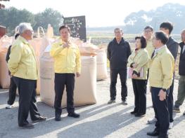 정읍시가 올해 1만 3000여 톤의 공공비축미곡 매입을 추진 중인 가운데, 이학수 시장이 13일 건조벼 매입이 한창인 이평면 정부양곡창고를 찾았다. 이 시장은 어려운 여건 속에서도 고품질 쌀 생산에 힘쓴