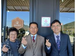 진서면의 ‘곰소리 11 카페’가 지역사회 나눔 확산에 동참하며 착한가게 캠페인에 새롭게 참여했다. 지난 10일, 진서면지역사회보장협의체(민간위원장 김경곤)는 곰소리11 카페에서 착한가게 현판식을 열고