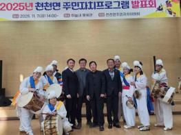 장수군 천천면 주민자치위원회는 천천면 하늘내체육관에서 ‘2025년 천천면 주민자치 프로그램 발표회’를 성황리에 개최했다고 11일 밝혔다. 이번 발표회는 주민자치 프로그램 수강생들이 1년 동안 갈고닦