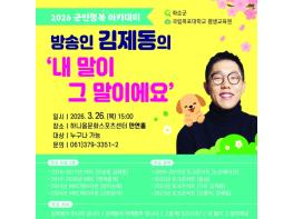 화순군은 오는 3월 26일 하니움문화스포츠센터 만연홀에서 ‘2026년 군민행복 아카데미’ 개강식을 개최한다고 밝혔다.개강식은 오후 3시에 시작되며, 방송인 김제동 씨가 ‘내 말이 그 말이에요’를 주제로