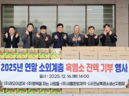 전남 함평군에서 지역 업체들이 힘을 모아 소외된 이웃을 위한 나눔을 실천하며 이웃 사랑에 앞장서고 있다. 함평군은 18일 “㈜래오이경제(대표 이경재), ㈜행복을 파는 사람들(대표 박수미·안정택), ㈜새