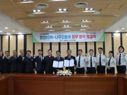 나주소방서는 17일 한전KDN 본사에서 지역 공공안전 강화를 위해 업무협약(MOU)을 체결했다.이번 협약은 양 기관 관계자 13명 참석으로 공공기관 간 협력체계를 구축해 지역 주민의 생명과 재산을 보호하고