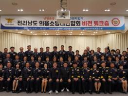 전남의용소방대 연합회가 2025년 전남의용소방대 활동을 돌아보며 도민 안전수호를 다짐하는 시간을 가졌다.9~10일 담양리조트에서 개최된 워크숍에는 소방본부장 등 소방공무원 및 의용소방대 연합회장단