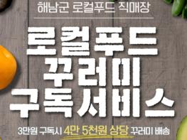 해남군 로컬푸드 직매장에서 지역 농산물 소비 촉진과 농가 소득 안정화를 위해‘로컬푸드 꾸러미 구독서비스’를 운영한다.이번 구독서비스는 3월부터 12월까지 10개월간 진행되며, 소비자가 월 단위로 신