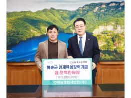화순군은 지난 12일 구쁘농업회사법인(대표 오성주)이 지역 인재 육성과 학생들의 학업 지원을 위해 장학금 500만 원을 화순장학회에 기부했다고 밝혔다.이번 기부는 지난해에 이어 올해도 이어진 것으로,