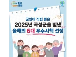 전남 곡성군은 2025년 한 해 동안 군정을 빛낸 6대 우수시책 사업을 선정했다고 16일 밝혔다. 군은 각 부서에서 추진한 32개 사업을 대상으로 1차 내외부 전문가 심사로 10대 우수시책을 선정했고, 2차 군