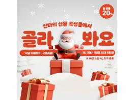 곡성군은 연말을 맞아 지역 농특산물 소비를 촉진하고 소비자들의 연말 선물 준비를 돕기 위해 16일부터 22일까지 7일간 곡성몰에서 크리스마스 특별전을 진행한다고 밝혔다. 이번 특별전에는 곡성몰에 입점