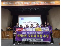 신안군여성단체협의회(회장 안미영)가 11월 28일 전남여성가족재단에서 개최된 ‘2025년 여성폭력추방주간 기념행사’에서 여성폭력 방지 유공을 인정받아 전남도지사 표창을 수상하는 영예를 안았다. 이번