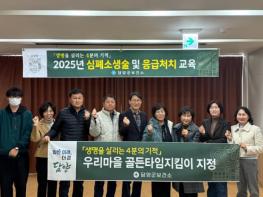 담양군이 지난 28일 마을에서 발생하는 응급상황에 신속히 대응하기 위해 응급처치 교육을 이수한 주민을 ‘우리마을 골든타임지킴이’로 지정했다. 골든타임지킴이는 심폐소생술과 자동심장충격기 사용법