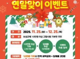 보성군은 연말을 맞아 고향사랑기부제 참여 활성화를 위해 오는 12월 25일까지 ‘고향사랑기부제 보성과 함께하는 연말맞이 이벤트’를 진행한다고 밝혔다. 이벤트 참여 방법은 고향사랑e음 누리집에서 보