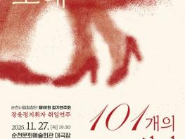 순천시는 오는 27일 저녁 7시 30분, 순천문화예술회관 대극장에서 순천시립합창단 제101회 정기연주회 '사랑의 노래, 101개의 희망'을 개최한다고 밝혔다.이번 정기 공연은 장윤정 지휘자의 취임 후 첫 연주