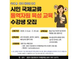 광양시는 국제 자매·우호도시 교류와 각종 국제행사 등 국제교류 현장에서 활동할 전문 통역 인력을 체계적으로 육성하기 위해 '국내 통·번역 대학원 연계 시민 국제교류 통역자원 육성 교육' 수강생을 3월