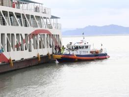 완도해양경찰서(서장 김태환) 지난 5일 전남 완도군 화흥포항 인근 해상에서 관계기관과 함께 여객선 내 전기차 화재 사고에 대비한 합동 훈련을 실시했다.완도해경과 KOMSA(한국해양교통안전공단)·완도소방