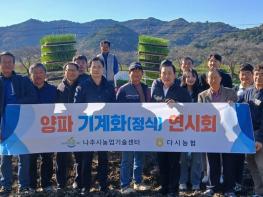 전라남도 나주시는 다시농협과 협력해 ‘양파 기계화 정식 연시회’를 개최하고 고령화와 인건비 상승 등으로 어려움을 겪는 양파 재배 농가의 작업 부담을 줄이고 재배 효율을 높이기 위한 기계화 기술 보
