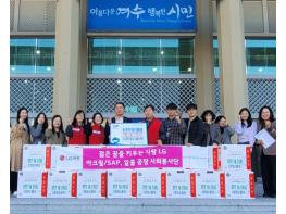 여수시는 ㈜LG화학 아크릴/SAP·알콜공장 사회봉사단(공장장 김남수·김수)이 지난 14일 관내 저소득 가정의 따뜻한 겨울나기를 돕기 위해 270여만 원 상당의 전기매트 25세트를 기부했다고 밝혔다.이날 시청