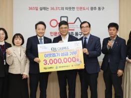 광주 동구는 17일 구청 접견실에서 OB맥주 광주지점(지점장 김태호)의 이웃돕기 성금 3백만 원 기부금 전달식을 진행했다고 밝혔다. 이번 성금은 광주사회복지공동모금회(회장 구제길)를 통해 동구로 지정기