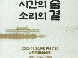 전라남도 나주시가 오는 20일 오후 7시 30분 나주문화예술회관에서 나주시립국악단 제12회 정기연주회를 개최한다. 이번 연주회는 ‘나주, 시간의 숨, 소리의 결’이라는 주제로 나주의 전통 국악과 현대적