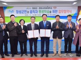 장성군이 10일 군청 상황실에서 경희사이버대학교와 업무협약을 체결했다. 김한종 장성군수, 신봉섭 경희사이버대학교 부총장 등 관계자 10여 명이 참석했다.협약에 따라 두 기관은 △군민·공직자 평생교육