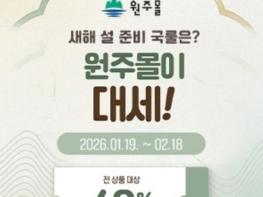 원주시 공식 인터넷 쇼핑몰 ‘원주몰’이 설 명절을 맞아 다음 달 18일까지 ‘2026 원주몰 설맞이 기획전’을 진행한다.이번 기획전은 설 선물 수요에 맞춰 지역 우수상품을 중심으로 다양한 상품을 엄선해