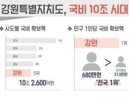 강원특별자치도는 국비 확보 10조 시대에 진입한 가운데, 인구 1인당 국비 확보액이 약 680만 원으로 전국 1위에 해당한다고 밝혔다. 2026년도 강원특별자치도 국비 확보액은 총 10조 2,600억 원으로 경기,