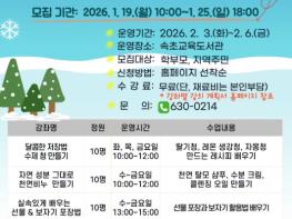속초교육문화관은 3월 정규 강좌 개강에 앞서 학습 공백기를 활용한 학습 기회를 제공하고자, 2월 3일부터 6일까지 학부모와 지역주민을 대상으로 ‘겨울 학부모 틈새강좌’를 운영한다. 이번 틈새강좌는 △