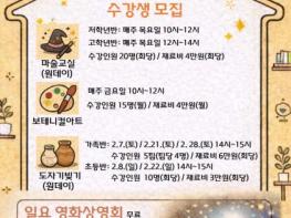 원주시 문화공유플랫폼에서 ‘문화예술 교육 프로그램’ 수강생을 모집한다.마술 교실, 보테니컬 아트, 도자기 빚기 등 총 3개 강좌가 개설되며, 이를 통해 아이부터 어른까지 모든 세대가 함께 배우는 기회