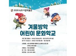 속초시립박물관이 어린이들이 겨울방학 기간 다양한 문화교육 활동을 즐길 수 있도록 ‘2026 겨울방학 어린이 문화학교’를 2월 5일부터 2월 7일까지 2박3일 일정으로 운영한다.어린이 문화학교는 매년 방학
