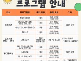 둔내청소년문화의집이 다가오는 겨울방학을 맞아 지역 청소년들의 소질 계발과 유익한 여가 선용을 위한 ‘2026년 겨울방학 프로그램’ 수강생을 모집한다.이번 프로그램은 오는 1월 19일부터 2월 14일까지