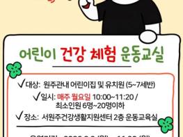 서원주건강생활지원센터는 지역 어린이들의 비만을 예방하고 올바른 운동 습관을 형성하기 위해 오는 2월부터 ‘어린이 건강 체험 운동교실’ 프로그램을 운영한다.이번 프로그램은 2월 2일부터 11월 30일까