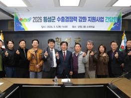 횡성군이 관내 중소기업의 해외 시장 진출을 돕고 수출 역량을 결집하기 위해 발 벗고 나섰다. 군은 5일 오후 군청 2층 소회의실에서 관내 주요 가공식품 수출기업 14개사 관계자들이 참석한 가운데,‘2026